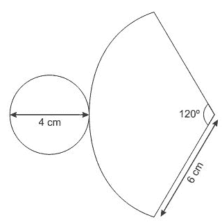 (PUC RS/2013) Um desafio matemático construído pelos alunos do Curso de Matemática tem as peças no formato de um cone. Sendo assim, a figura abaixo representa a planificação de uma das peças construídas. Portanto, a área dessa peça é de __ cm².