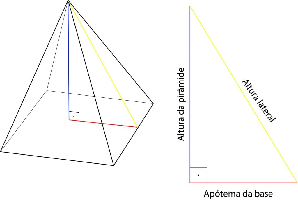 - Apótema da pirâmide: altura da face da pirâmide;
