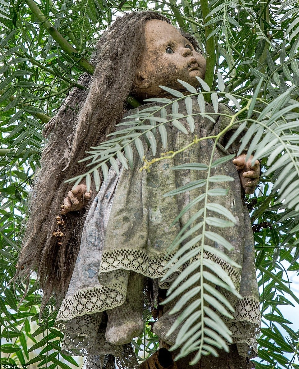 Com o passar do tempo, as bonecas tem sofrido com o intemperismo e chuva, sol e outros fatores e estão se tornando cada vez mais bizarras.