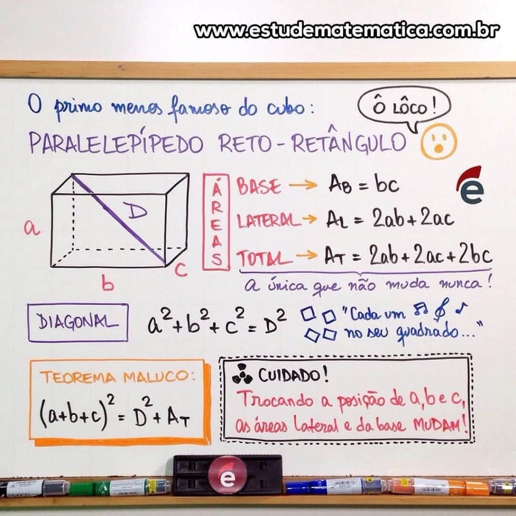 Por fim, agora que já vimos o que é um paralelepípedo, suas classificações, e fórmulas, vamos a alguns exercícios: